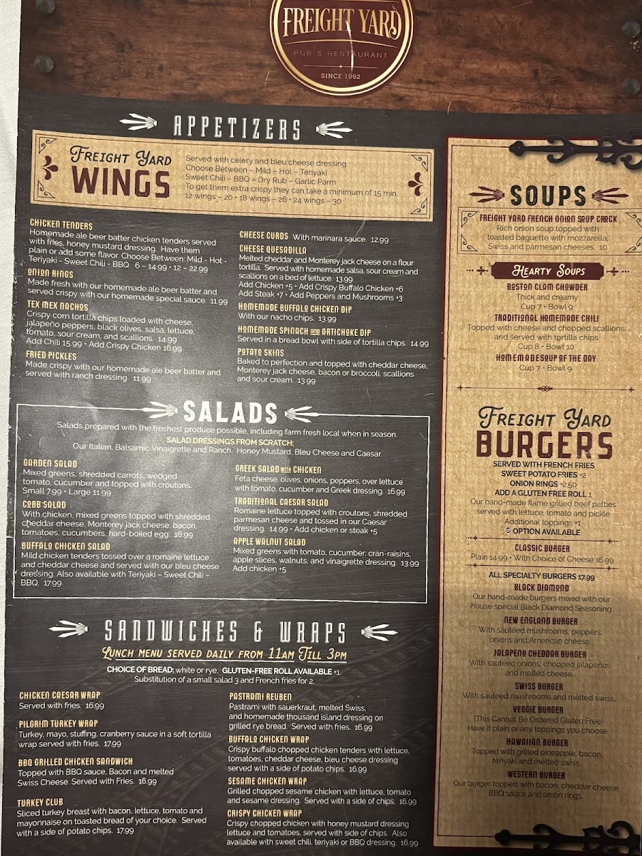 Welcome to Freight Yard Pub, a charming gem nestled in the heart of North Adams, Massachusetts. Located just under the overpass at Heritage State Park, this pub boasts ample parking and inviting outdoor seating on its patio. The atmosphere is vibrant, perfect for both casual diners and those looking to enjoy live music on weekends.